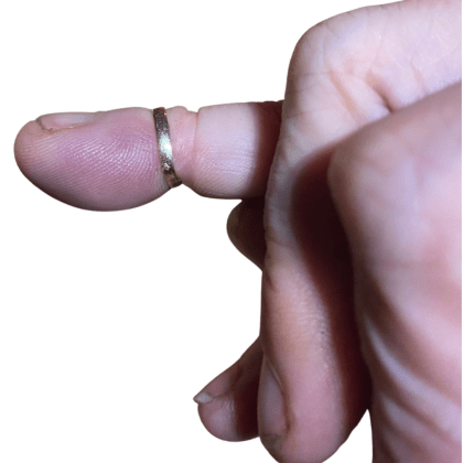(Sur les photos, mon annulaire droit que j’ai dû broyer pour le sortir du Conibear 330 qui s’était refermé sur les doigts de mes deux mains.)